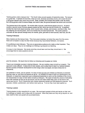 Training Database Banyan Trees and Banana Trees (Article) FIVE ROLESStarter—Advancement 5 min Paul Hiebert, "Banyan Trees and Banana Trees." Anthropological Reflections on Missiolooical Issues. Grand Rapids: Baker, 1994. Download Instructions: Use as a handout or discussion point in small groups. This brief article addresses the permission barrier in leadership. Copy this link to share Banyan Trees and Banana Trees with someone else: Copy Link Alphabetical Listing of Training Elements One Doorstep to a Family 15-Second Testimony 411 Acts 2 Study Acts Pattern Study Allen, Roland - Strategic Points Allen, Roland - Substance of Paul’s Preaching Allen, Roland - The Teaching Are We Disciples of Jesus Christ Balance in the Five-Fold Ministry Banyan Trees and Banana Trees Big Vision Blind Spot Breaking the Rules Church Identity Triangle Church Planting Model Comparison Church Planting Movements (PDF) Coaching Plan Coleman, Robert - The Master's Plan Common Obstacles and Problems of Asian SCs Community Survey Comparing SC Training Models CPM Continuum Creation to Christ Story Creative Problem Solving Dead Sea and Sea of Galilee Designing a Training Plan Disciple-Making and Raising Children Discovery Bible Study - AIM for Believers Discovery Bible Study - AIM for Unbelievers Door-to-Door Preparation Ee-Taow, Part 1 Ee-Taow, Part 2 Eims, Leroy - Biblical Examples Eims, Leroy - Early Church Eims, Leroy - Two Examples Engel's Evangelistic Countdown Forces of Light and Darkness Four Kinds of Disciples Four Stages / Four Fields Four-Step Checklist for Just-in-Time Training Generational Growth Mapping God in My Home, Neighborhood, Workplace Gospel Bridges Gospel Encounters Record Gospel on the Hand Great Commission Partnership Hope in a Broken World Ibraham, Ishtak - Reaching Muslim People Inward & Outward Focus Iron-on-Iron Know - Be - Do Lessons from the Thessalonians Lockridge, SM - My King MAWL McGavran, Donald - Pattern of the Great Century McGavran, Donald - People Movements Models Multiplication Exercise New Life in Christ One Anothers One Mission Parable of the Cornfield Patterson, George - Spontaneous Multiplication Paul's Development - 5 Levels of Leadership Paul's Discipleship Model Paul's Three Journeys Pauline Case Study People in the Harvest (Four Soils) People List People Map (oikos or network) Person of Peace Positive Accountability Prayerwalking Problem Solving Exercise Profile of an Evangelist (SC) in a UPG Quotes & Verses Posters Reboot Richardson, Don - Concept Fulfillment Richardson, Don - Finding the Eye Opener Schindler's List—'I Could Have Done More' Schwartz, Glenn - Dependency Sending Narratives Study Seven Generations Seven Parts of a CPM Plan Simson, Wolfgang - Fathering Simson, Wolfgang - Fivefold Ministry Simson, Wolfgang - House Churches Small Group Sizes Smith, Steve - The T4T Story Stott, John - The Bible in World Evangelization Strategy Coordinator - Old and New Paradigm Strategy Snapshot Summary of the Acts Church Planting Pattern Testimony (Personal Story) The Bold Parts The Complete Package for CPMs The Five-Fold Ministry in the Four Stages The Four Fields and the Great Commission The Great Commission of Abraham The Great Story The Left Side of the Graph The Lorax—'Plant the Seed' The Modeling Sequence in Luke The Peter Pathway The Romans Road The Traffic Light The Word on the Street Three Circles Three Great Commands and AIM Pattern THUMB - Religious Groups Training Faithful Trainers (TFT) Triangle and Square Vision-Casting Vignettes What Is a Strategy Coordinator? Witness Model Zone Witnessing to Catholics Your New Journey