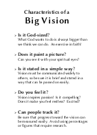 Instructions: Use this simple listing as a tool to help people create a statement of vision that honors God and motivates people. These points can help people evaluate what the Lord has laid on their heart so they can communicate it clearly to the people they lead.