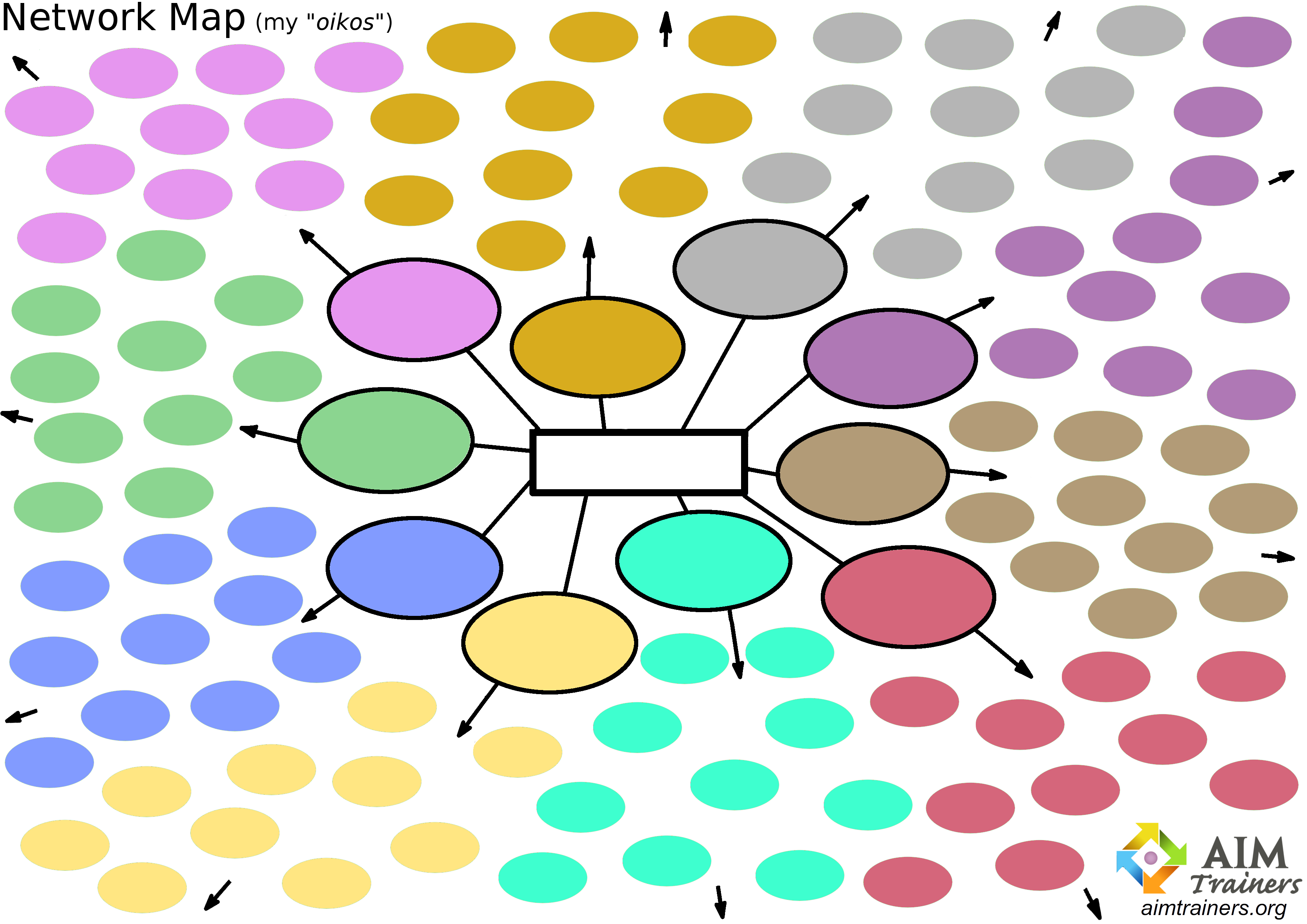 Oikos is the Greek word for house, household, or sphere of influence. The phrase "network map" can be used for people who are unfamiliar with what oikos means.